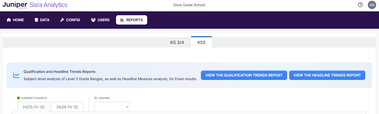 To access the Headline Trends Report, click REPORTS > KS5 and then ‘VIEW THE HEADLINE TRENDS REPORT’.