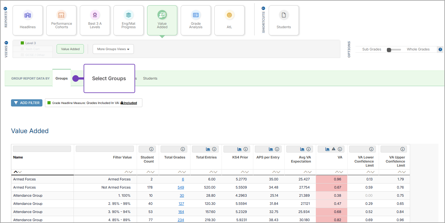 Sisra Analytics: KS5 - Exams: How do I analyse my school's headlines by key student groups?