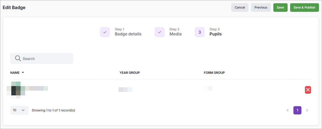 Any changes made to the badge will be saved as a draft, or finalised and published, based on your selection.