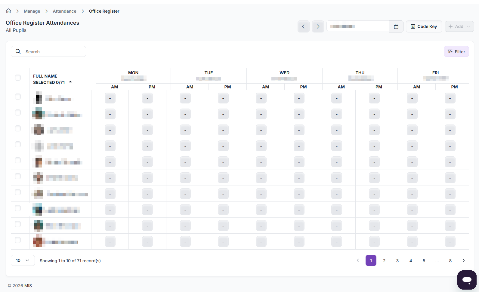 To record extended periods of future known absence, or to bulk fill absences for one or more pupils, see MIS: How do I make bulk updates to registers?