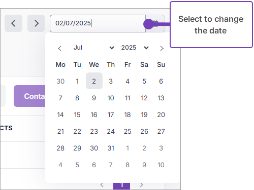 - Select the date of the unauthorised absences you want to view from the top right corner. By default, this is set to today's date. To change the date, either enter a new date or select using the calendar: