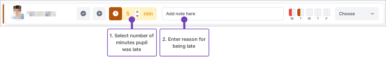 - Select the clock icon to mark the pupil as late: