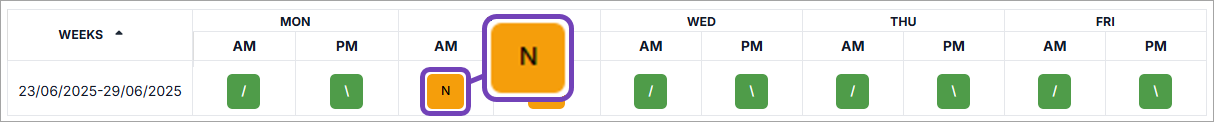 To remove an attendance code, select the dash (-).