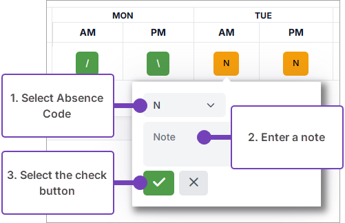- Repeat the above steps for any further absences.