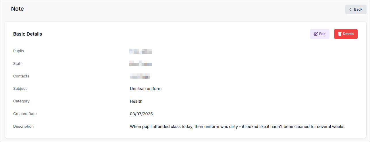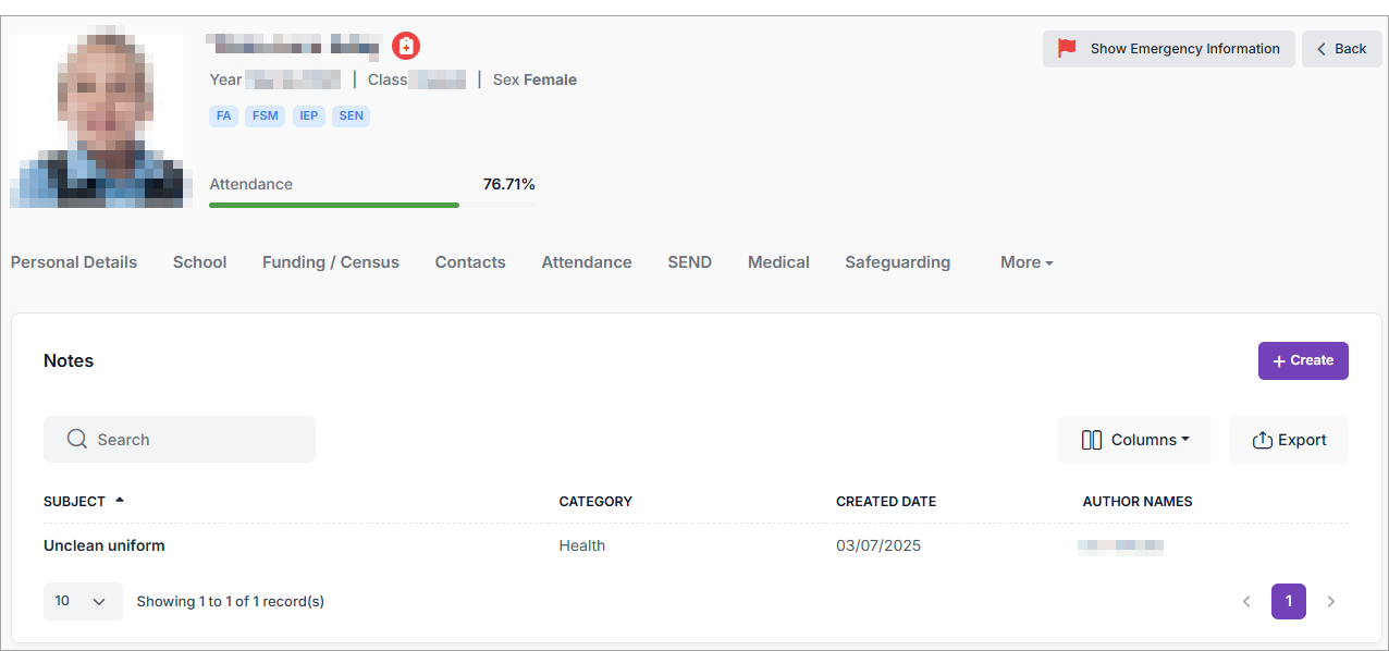 This article explains how to see a list of notes and access the detailed information stored in notes for an individual pupil from their record.