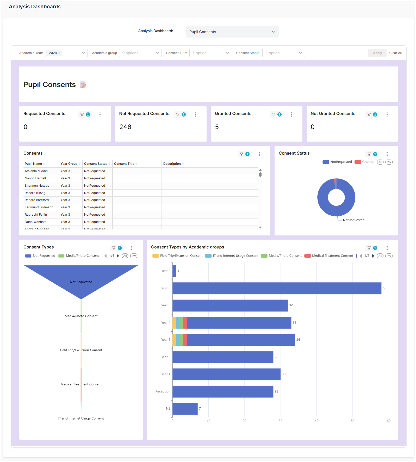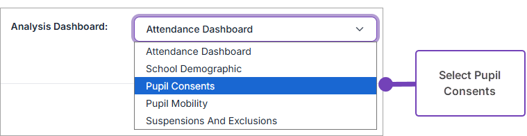- Select Pupil Consents in Analysis Dashboard: