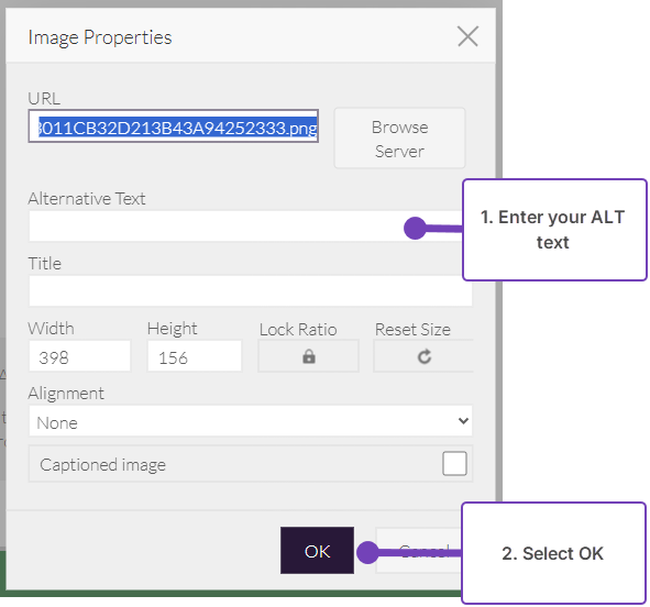 - Enter the Alternative Text (see section below for best practices when writing ALT text):