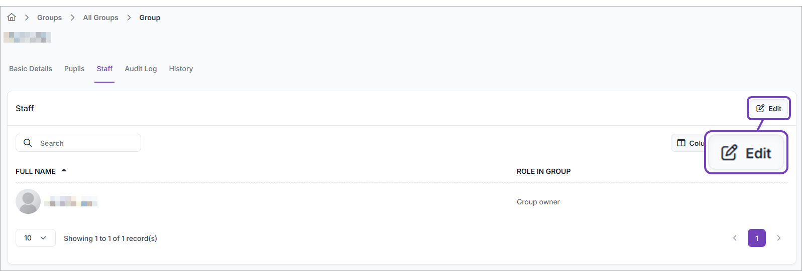 - You must be a staff member allocated the role of Group owner or Group editor.
