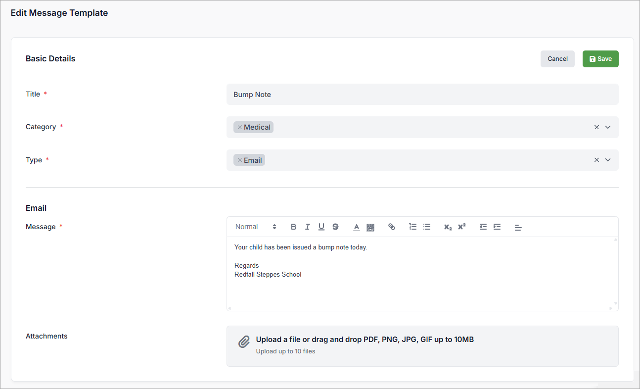 To edit a template in Comms Hub: