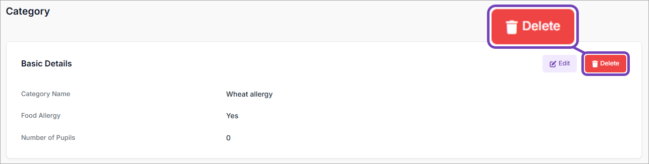 You can only delete a Medical Condition Category that has not been assigned to pupils or staff (must have 0 as the Number of Pupils and Number of Staff).