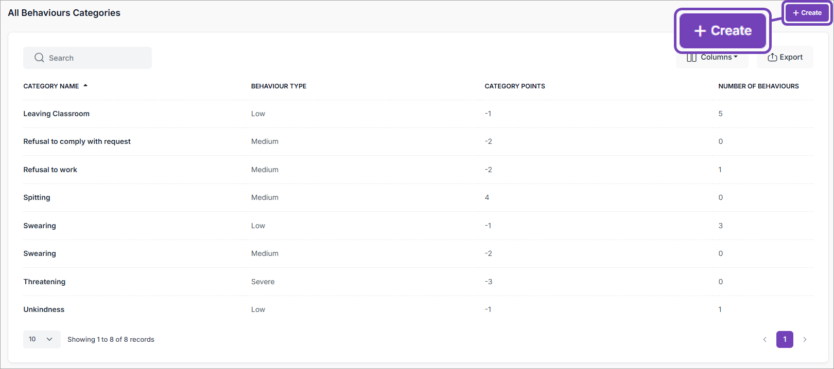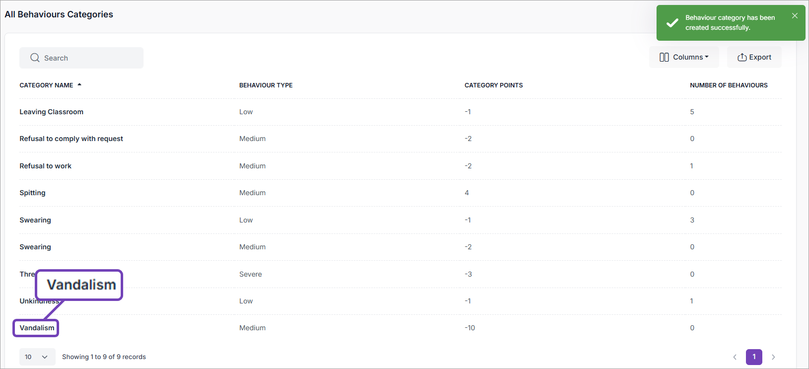- Select Behaviour Categories.