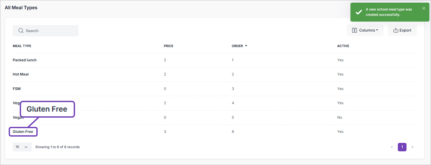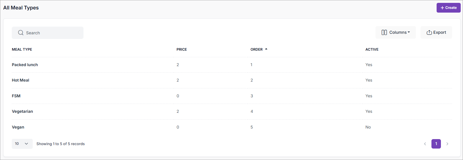 This article explains how to add a Meal Type within Juniper MIS. Meal Types are used when a pupil's choices of lunchtime meal are selected for the day. Meal Types contain the Price charged for the meal, the Order in which the meal is displayed when selecting a meal from a list within Juniper MIS, and whether the Meal Type is Active (in use, listed for selection).