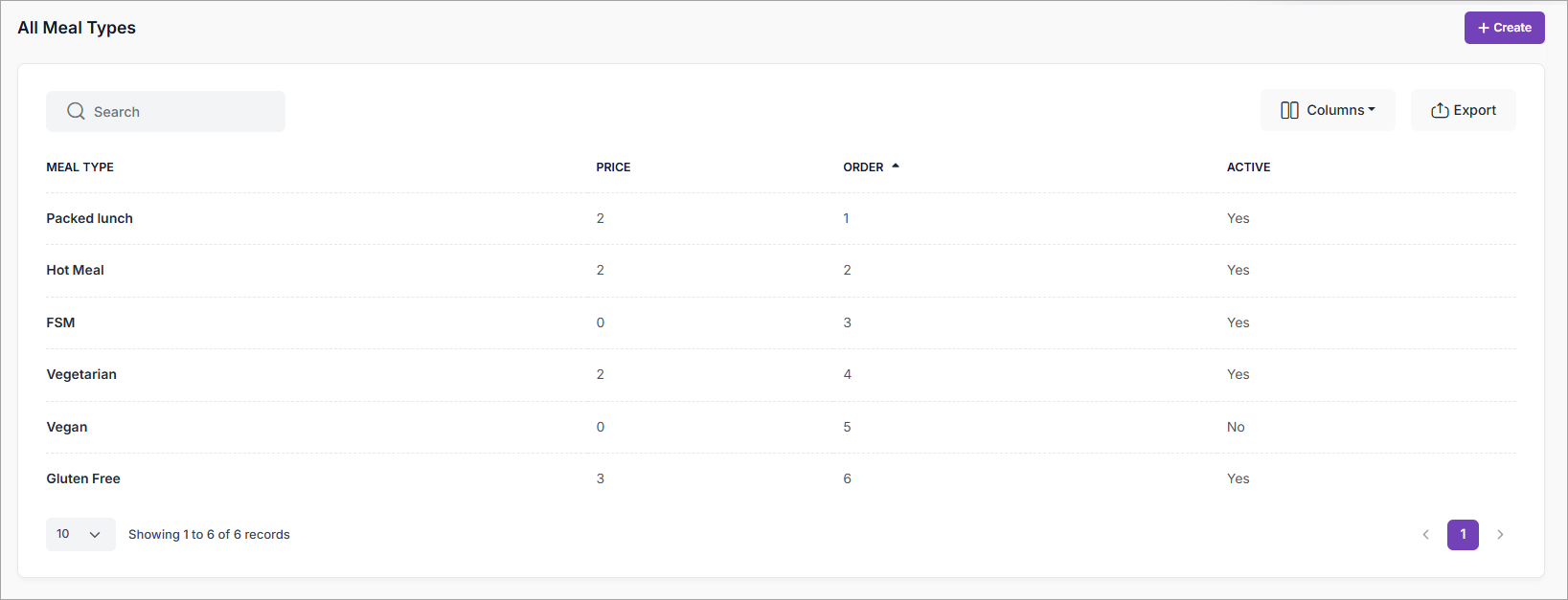 You can only delete a Meal Type that is not in use.