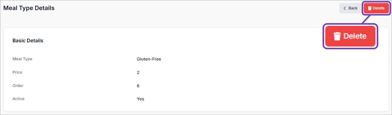 - You must have Account Admin or Account Owner permissions to delete a Meal Type.