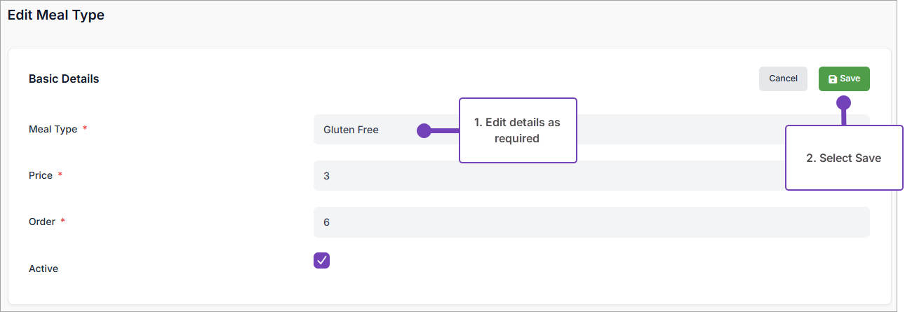 - You must have Account Admin or Account Owner permissions to edit a Meal Type.