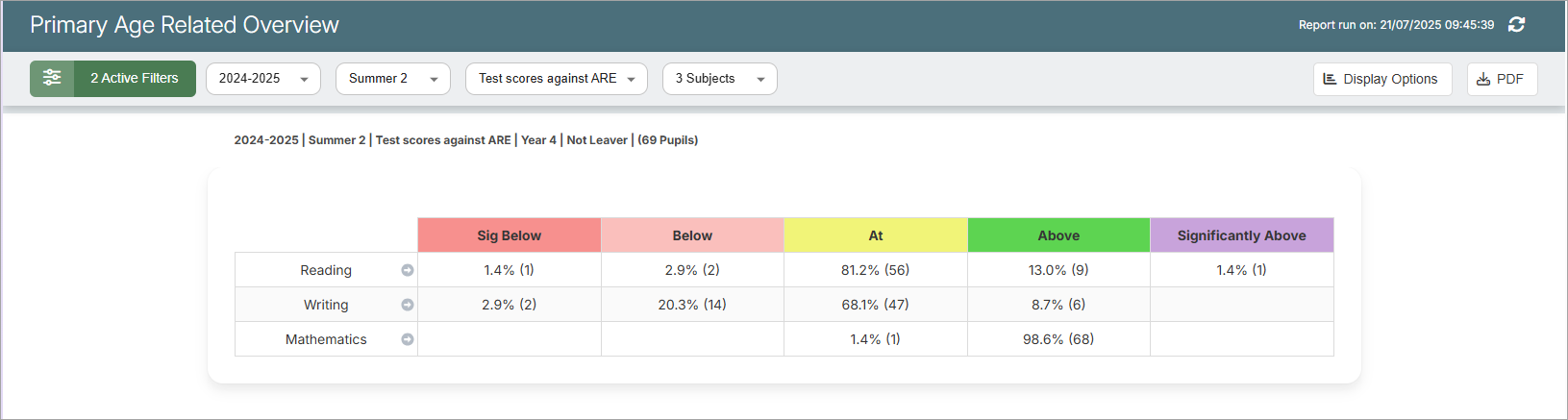 After you have entered your non-statutory test results into Sonar Tracker (see Sonar Tracker: How do I enter test scores?) the following reports can be used to analyse pupil performance:
