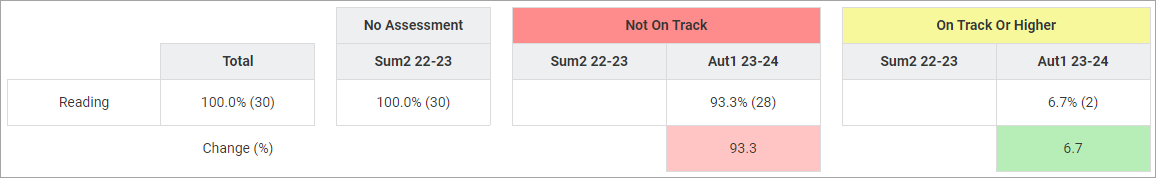Use the View options to display those pupils who are Not on Track (those who score below the threshold set by the school). |
