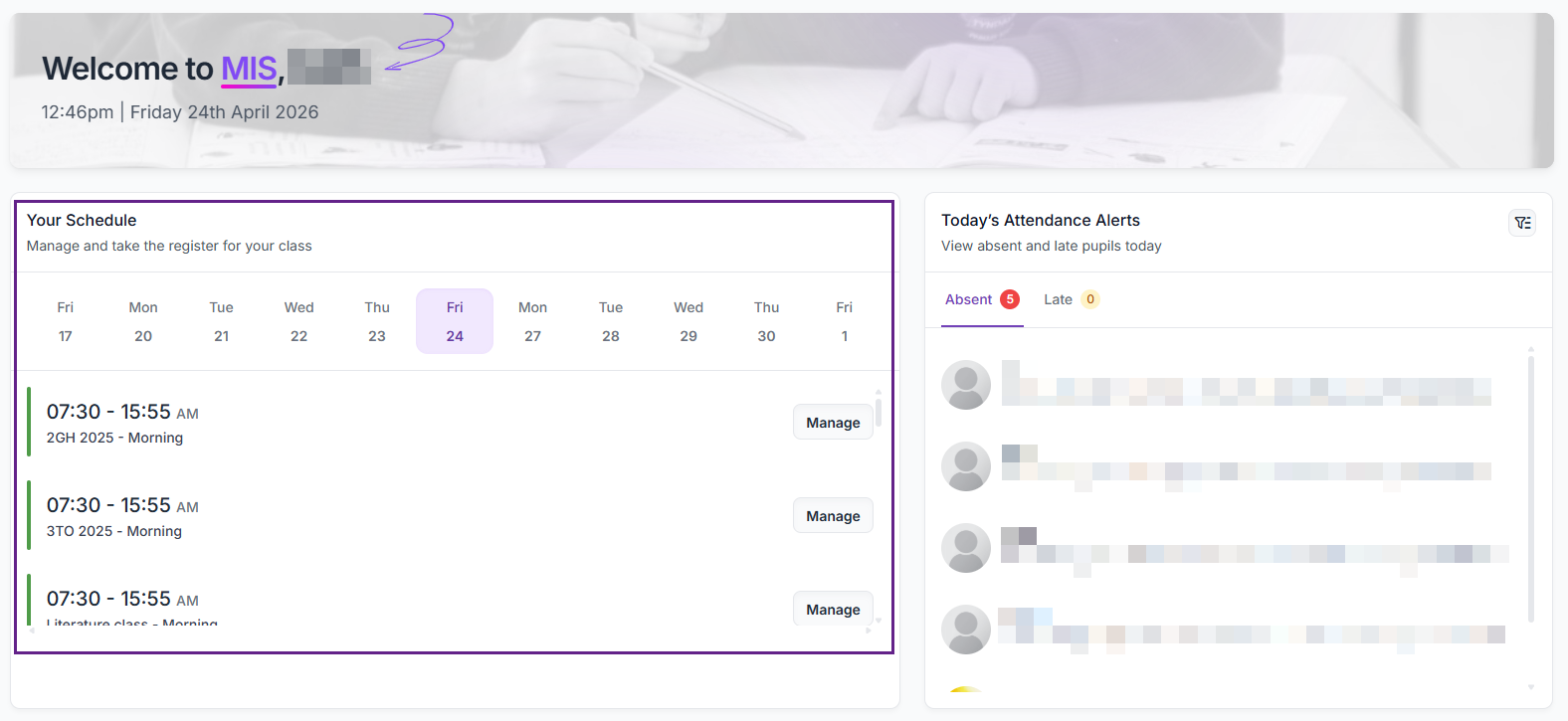 As a teacher, when recording school meals, do not project the register, as pupils may see any notes you've made.
