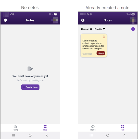 This article explains how to view any notes that you have created from within the Teacher App. Notes work like Post-it notes, letting you quickly capture ideas and reminders on the fly. Each note is made up of a brief text message and an assigned priority.