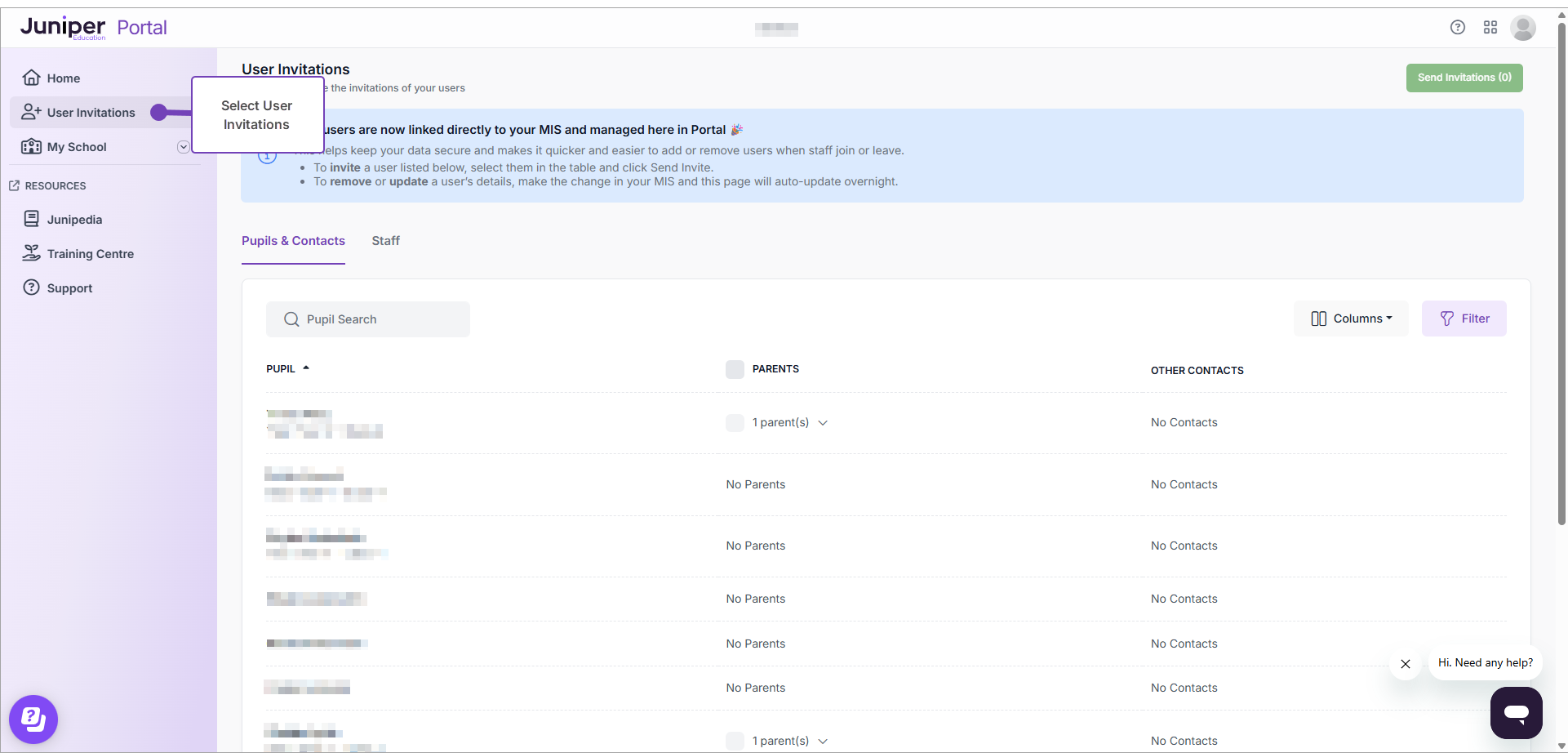 - Your school's MIS must be linked and managed through the Juniper Portal.