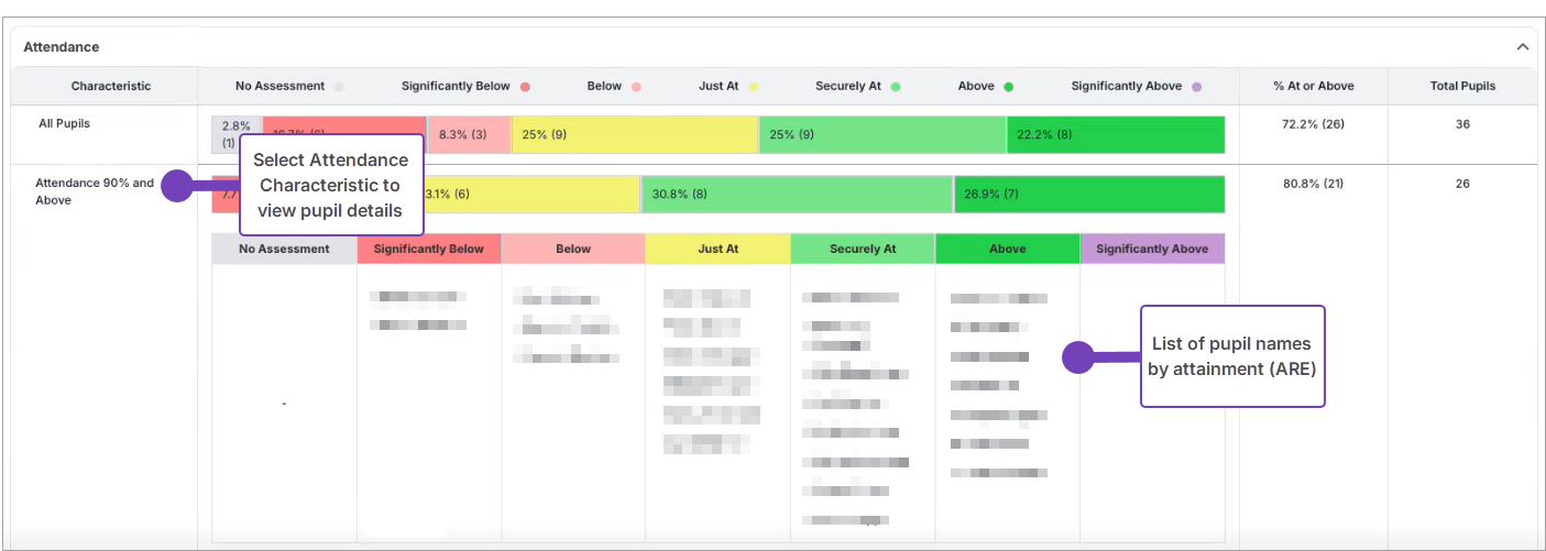 Select a Characteristic to view the names of the pupils in the Attendance group: