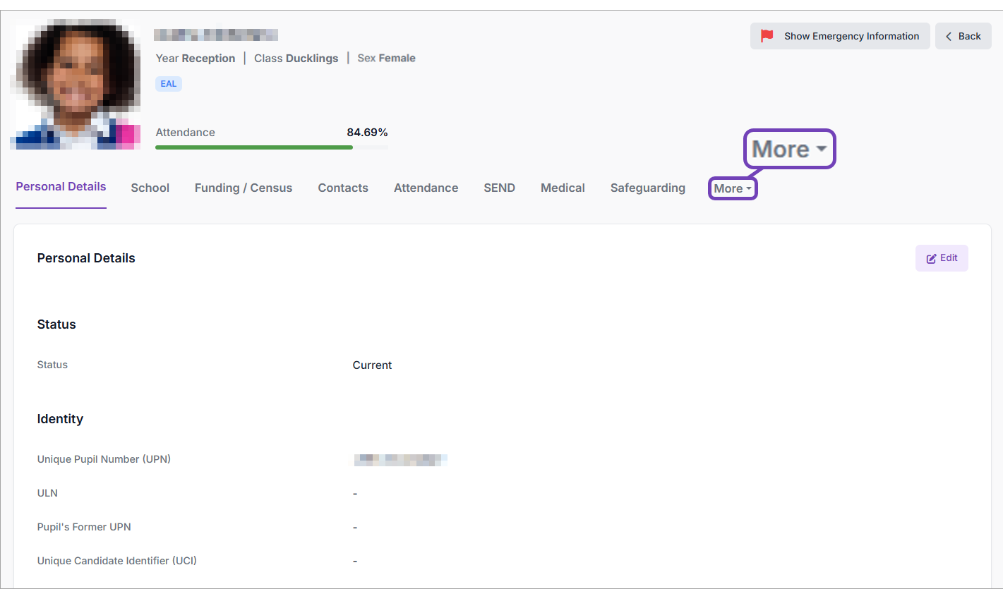 - When their pupil record opens, select More: