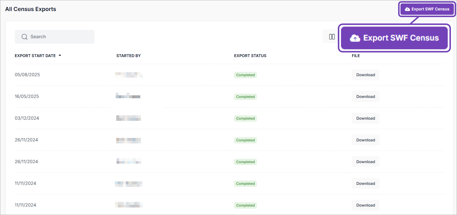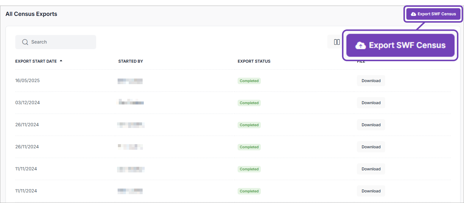 - Select View all SWF Census exports to return to the All Census Exports page.