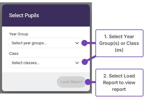 - Select one or more Year Groups, or Classes.