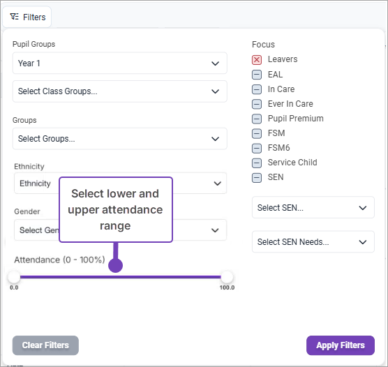 - Select an Attendance range using the sliders: