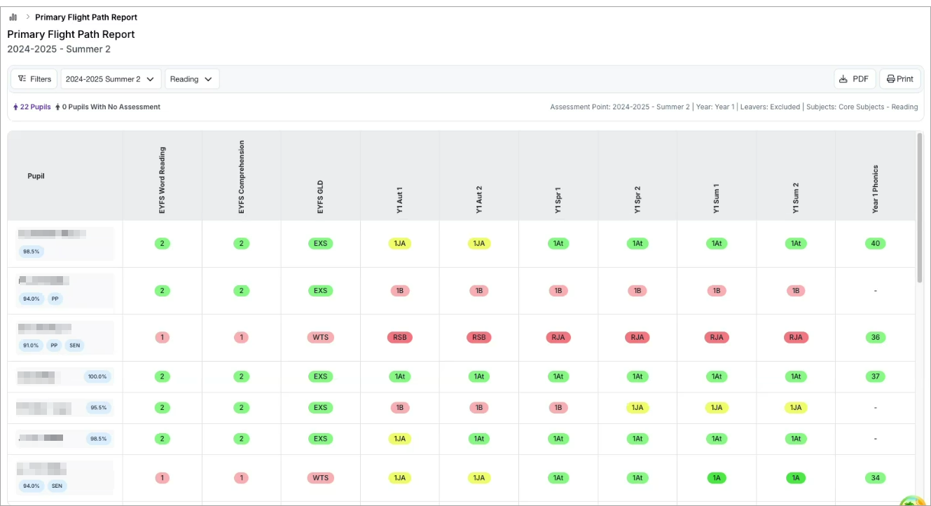 This article explains how to track the performance of pupils in a selected class, using the Primary Flight Path Report in Sonar Tracker.