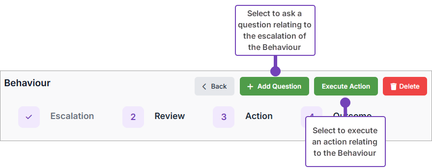 - Action an Escalation / Ask a question about the Behaviour.