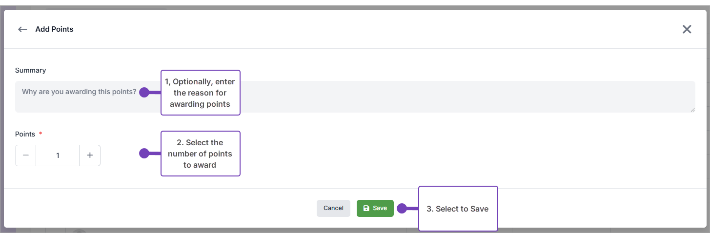 1. Optionally, enter a Summary explaining why you are awarding the points.