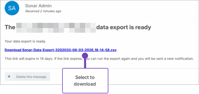 You will receive a message in your Sonar Tracker Inbox with a download link when the file is available.