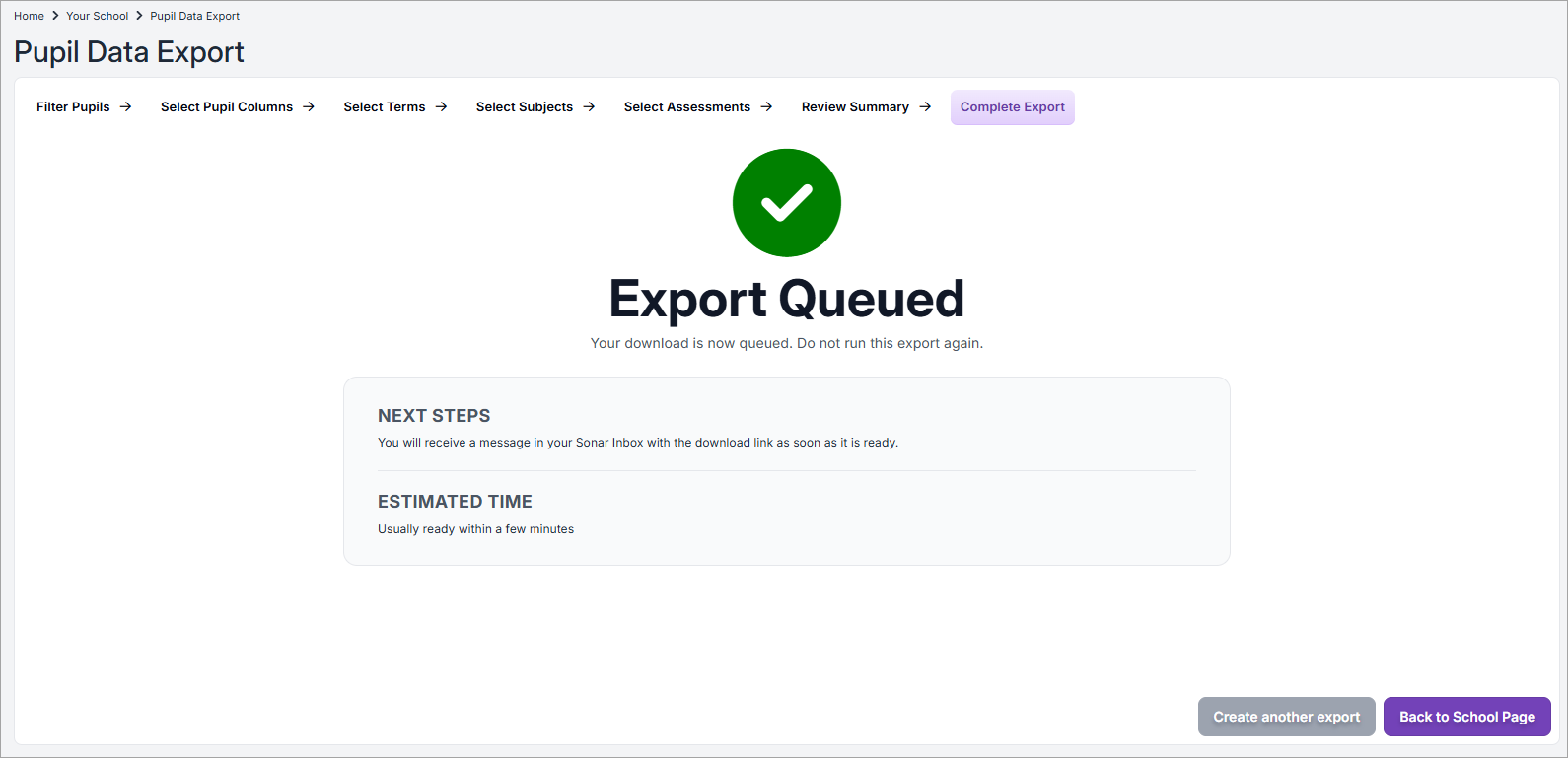 If you have migrated to Sonar Tracker from OTrack or Target Tracker and used reports that are not available in Sonar Tracker, use the Pupil Data Export Wizard to create your own CSV file so that you can curate, compare and analyse specific data based on your school's needs.
