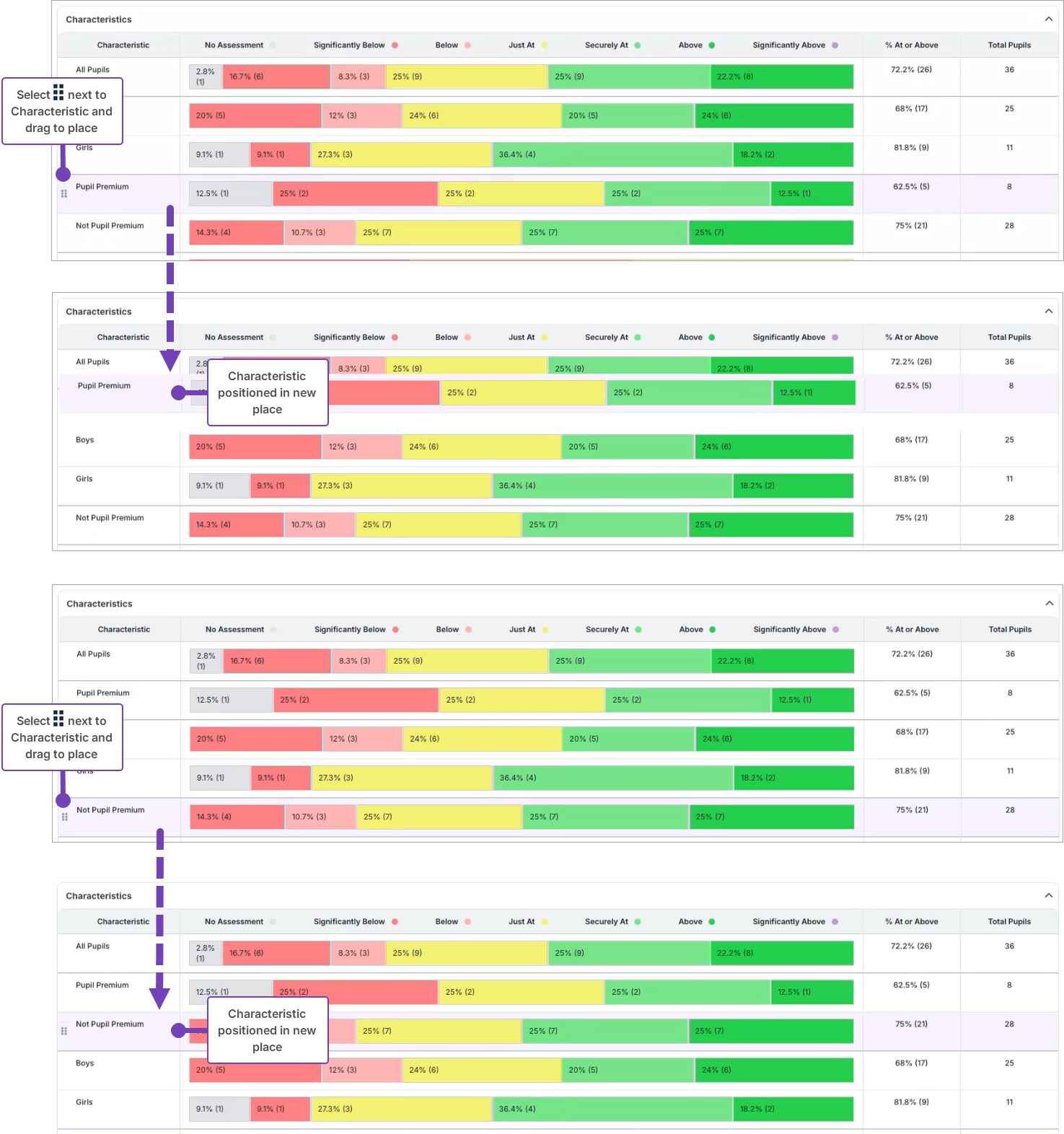 | Pupils | Number of pupils who are included in the report (includes those without assessment data). |