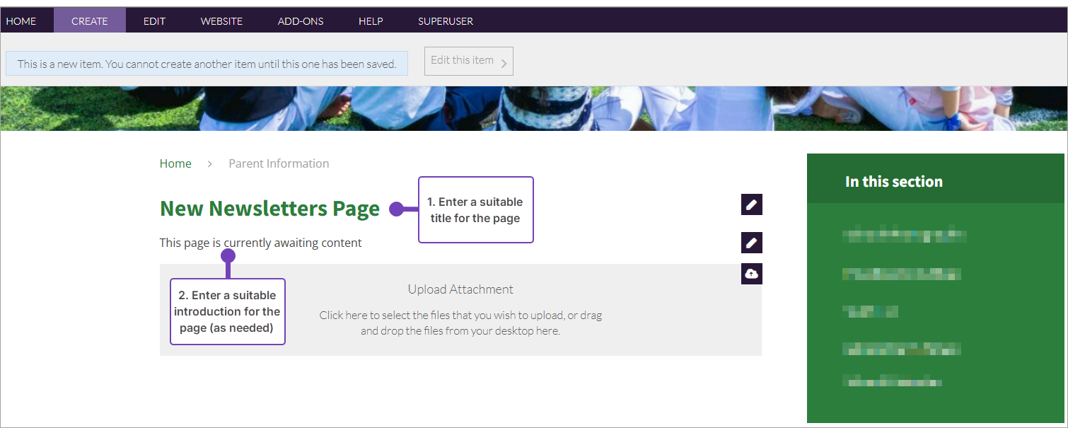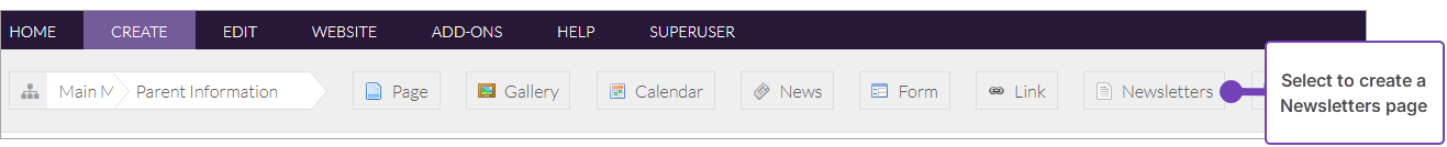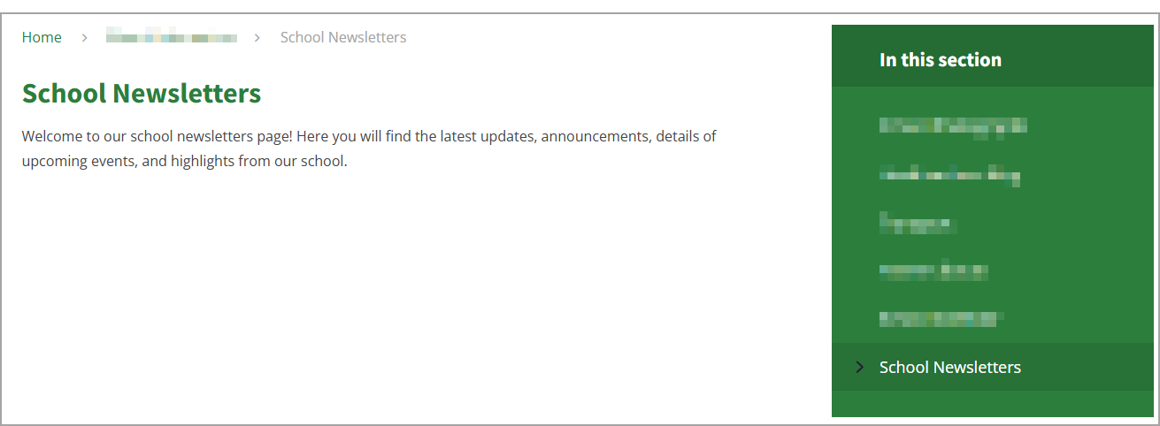 Although you can have multiple newsletter pages on your school website, a newsletter page cannot be created under an existing newsletter page.