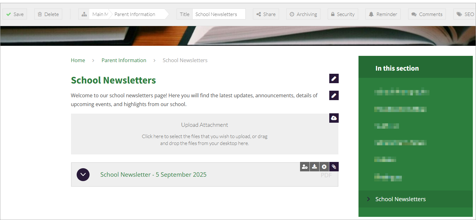 This article explains how to remove (delete) a PDF newsletter from a Newsletters page.