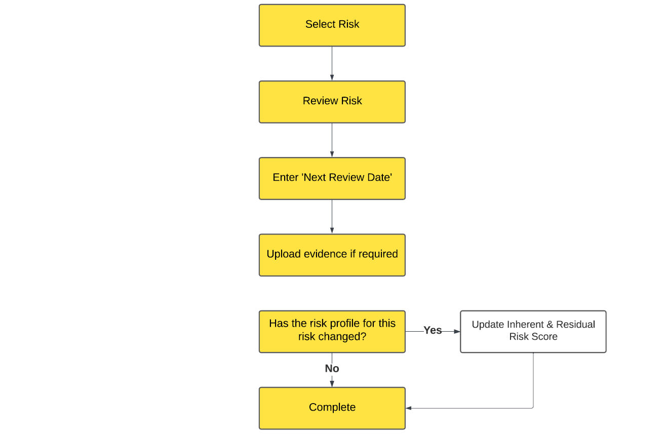 Follow the steps in this flowchart to review a risk (select to enlarge):