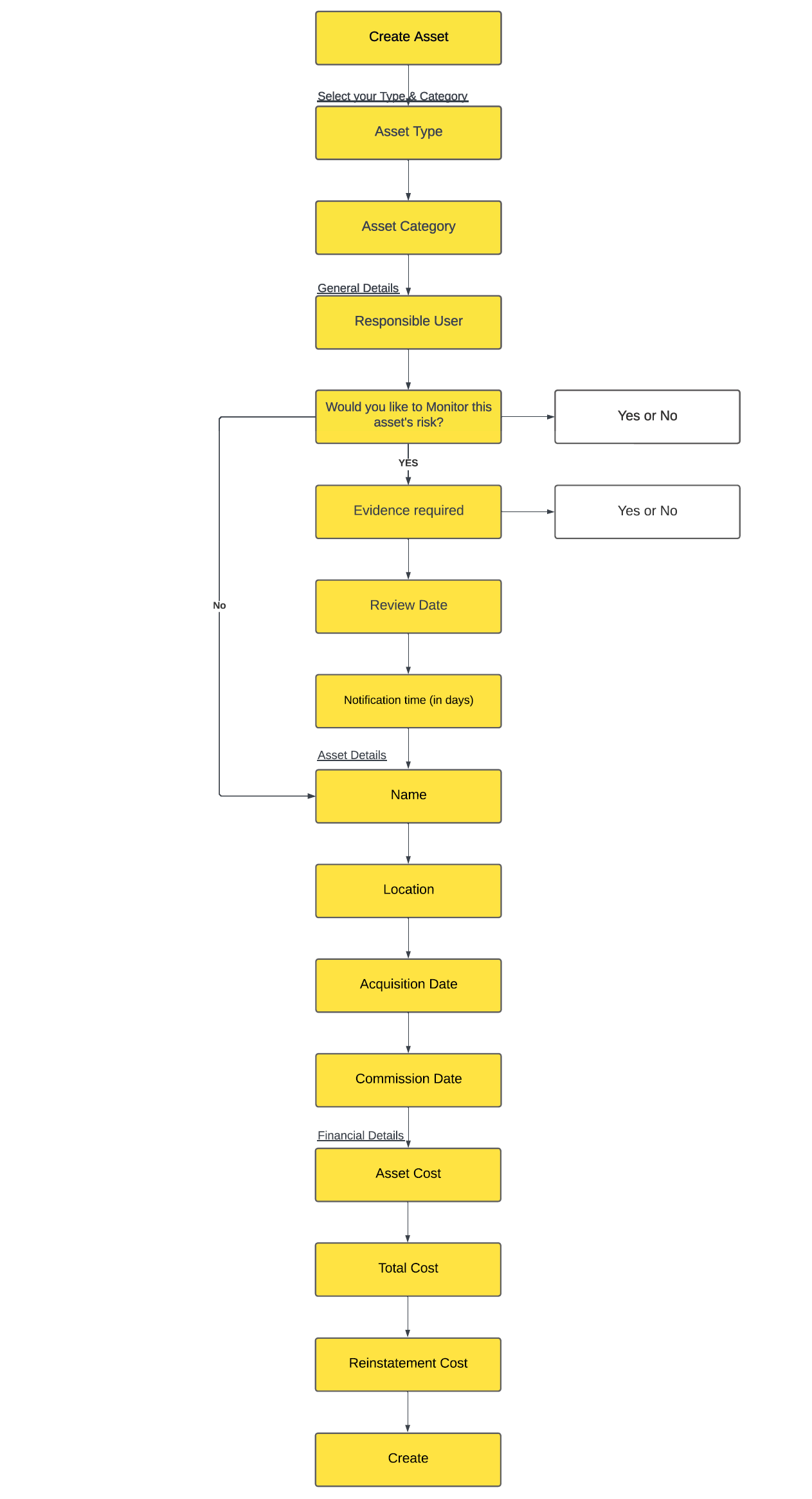 Follow the steps in this flowchart to create / add an Asset to your Asset Register (select to enlarge):