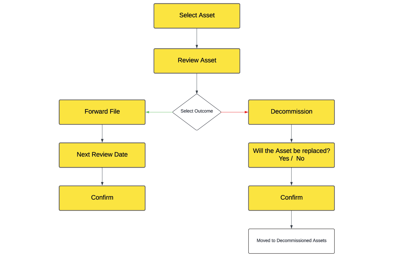 Follow the steps in this flowchart to review an Asset (select to enlarge):