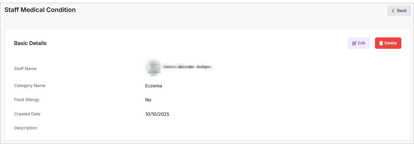 From the Medical Condition page, you can edit or delete the staff member's medical details.