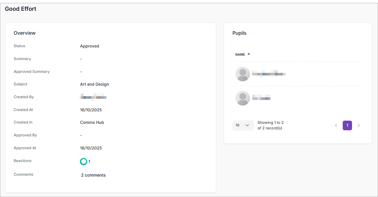 This article explains how to view any feedback from parents (through the Juniper Education App) in response to badges that have been awarded. Feedback takes the form of comments and reactions.