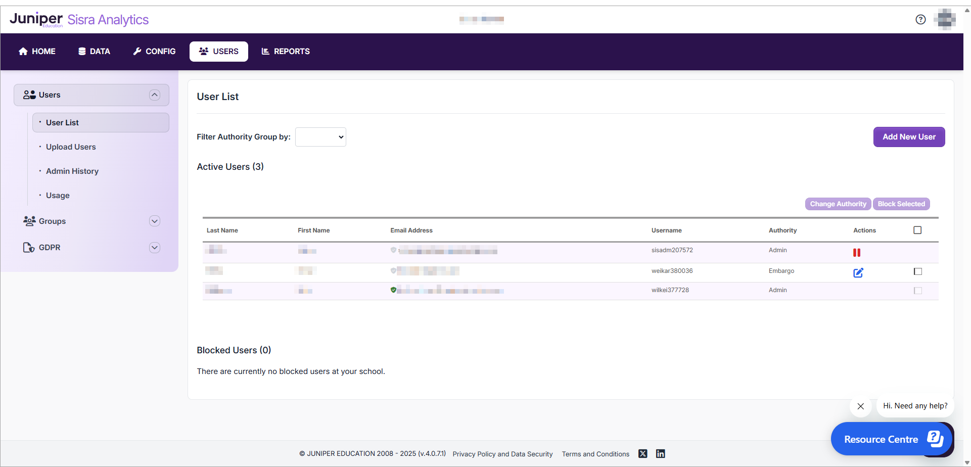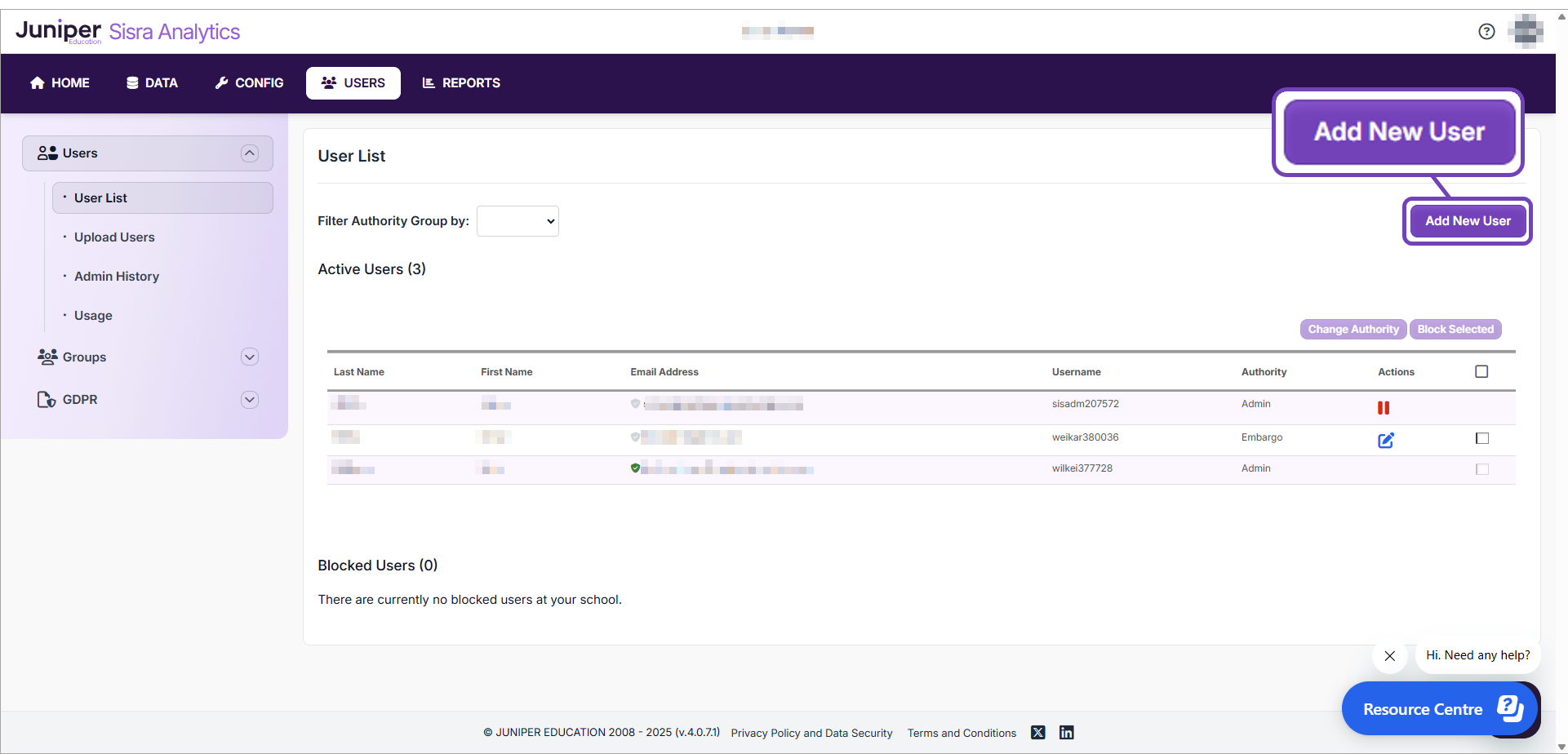 To upload users in bulk, see Sisra Analytics: How do I upload users?.