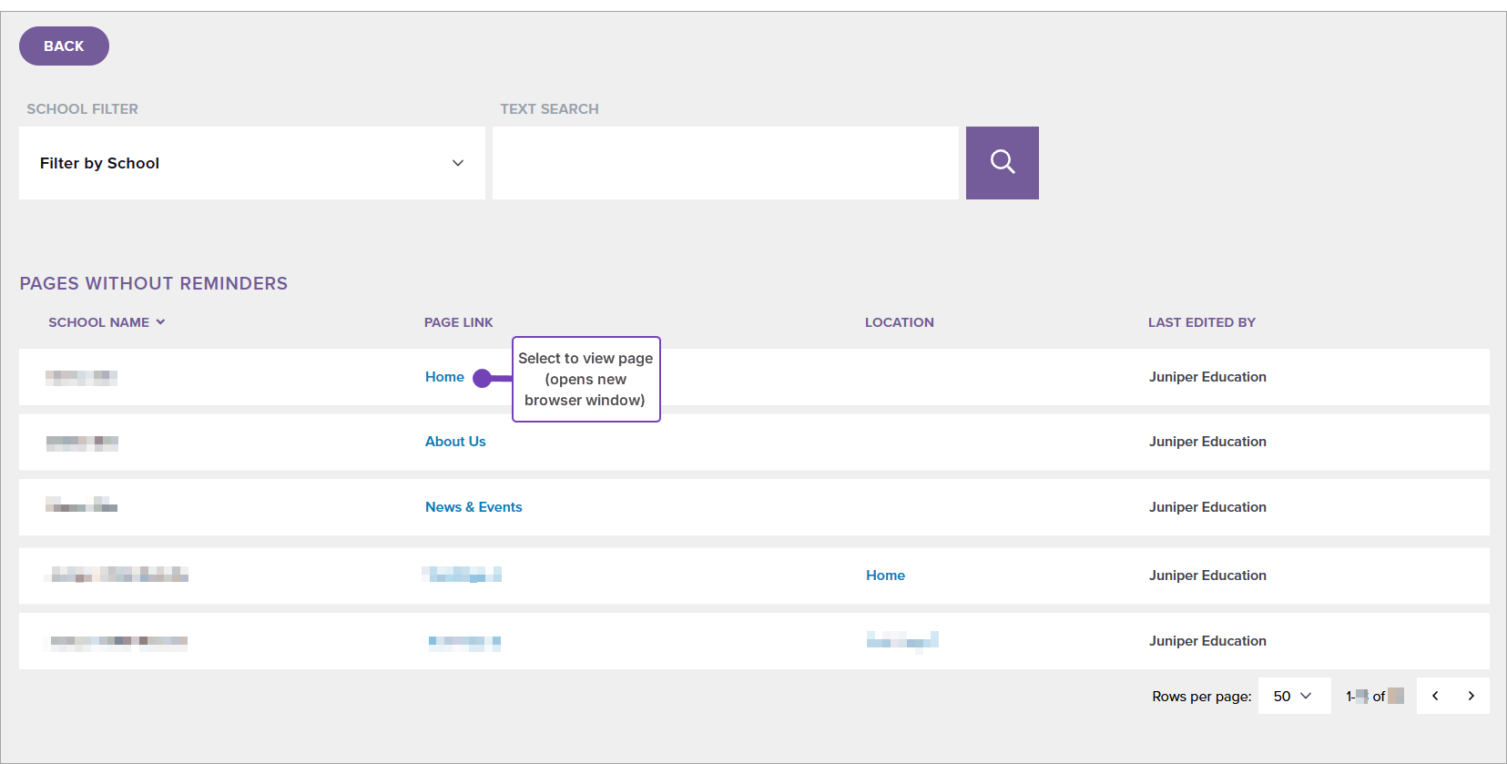 Select the Page Link to view the page.