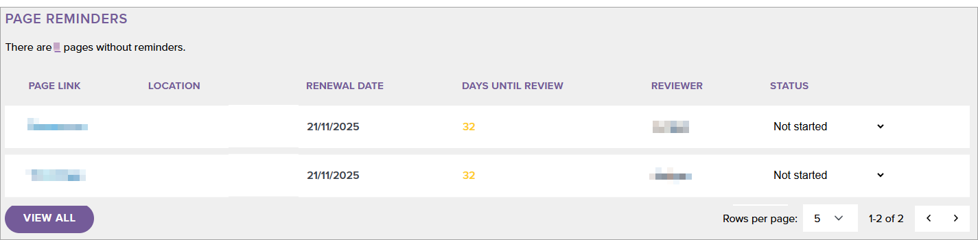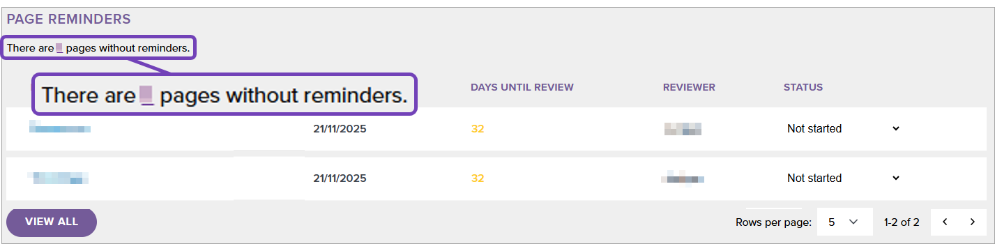 This article shows you how to find a list of webpages that don’t have a review reminder set using the Compliance Dashboard. If you are a MAT with access to MAT Dashboard, you can see a list of pages across all schools in your Trust without reminders.