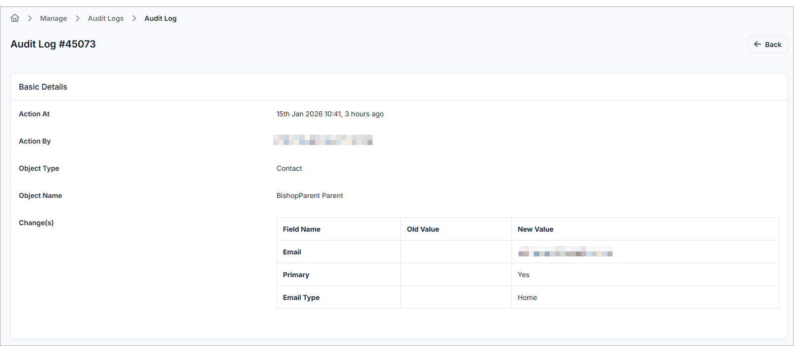 - Select an individual log entry to view its contents, which includes the specifics of the changes made: