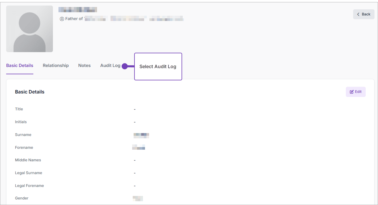 - From the contact record, select the Audit Log tab: