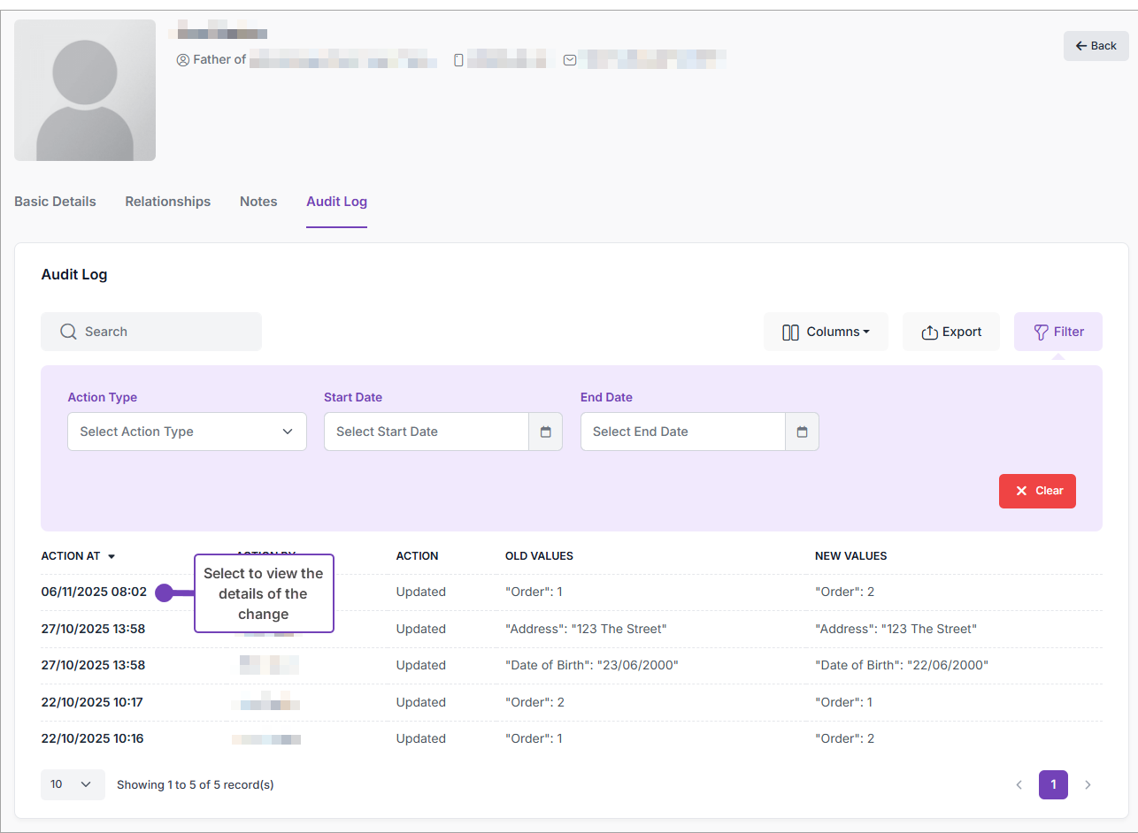 This article explains how to view an audit log of changes made to a selected contact within the MIS. The contract audit log shows who made each change and when, which can help identify the cause of issues or unauthorised access. The log also offers traceability and accountability, supporting GDPR compliance requirements.