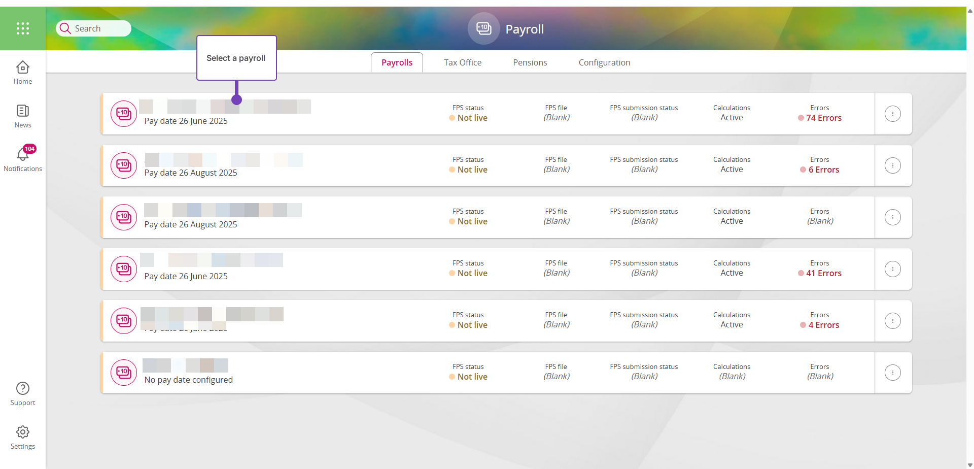 - Select the relevant payroll name: