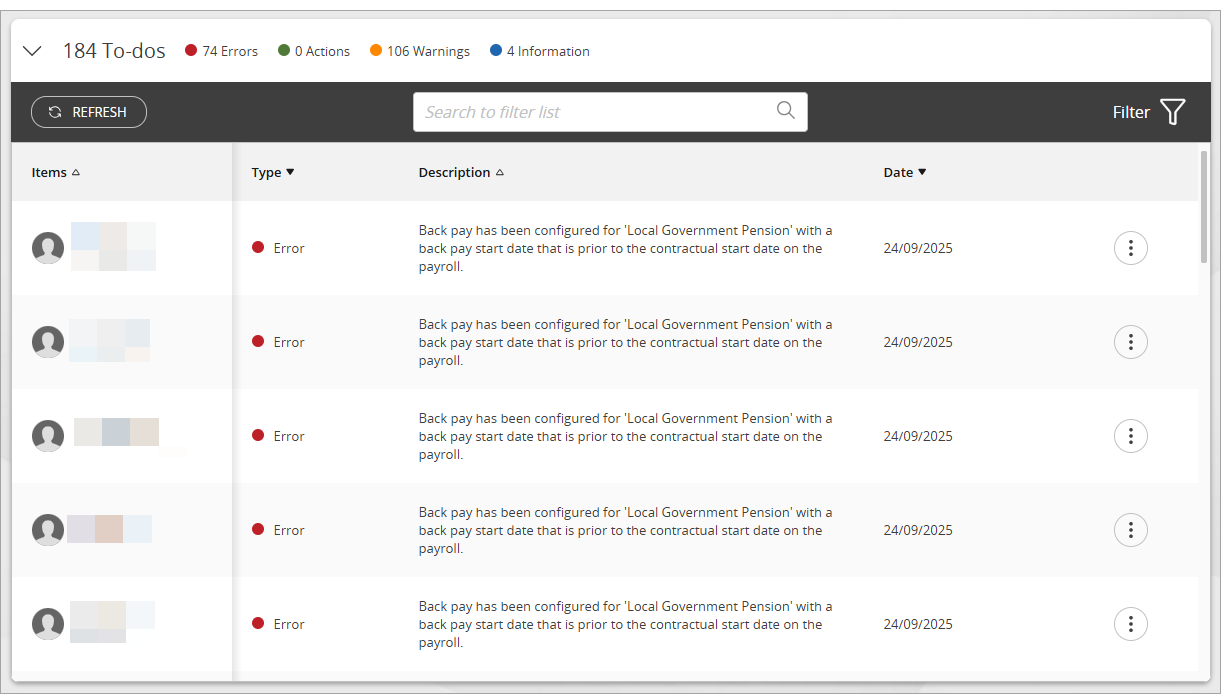 Errors will prevent the payroll from being finalised at month end